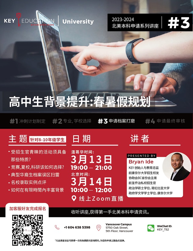 【本科申请讲座 】高中生背景提升:春暑假规划