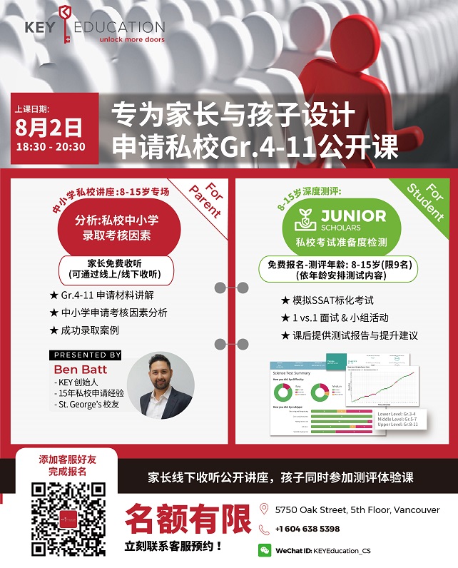 专为家长与孩子设计:申请私校Gr.4-11公开课公开课