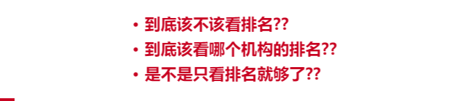 而对家长和学生们来说,专业和院校的拟定是大学申请需要迈出的第一步,然而这期间必定需要参考各种机构的排名。看完三五个排名机构的结果后通常只会让家长和学生更加晕头转向,不知所措。“排名”这两个字也是家长之间在谈到孩子选学校和专业时,出现频率最高的词之一。想必无数的家长心中都在焦虑: