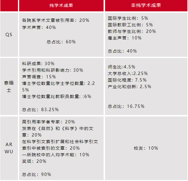 小结:显而易见,三个机构对于各自的考核点和占比都有自己的见解,从而才会导致同样一所大学的各机构排名会有天壤之别的问题。