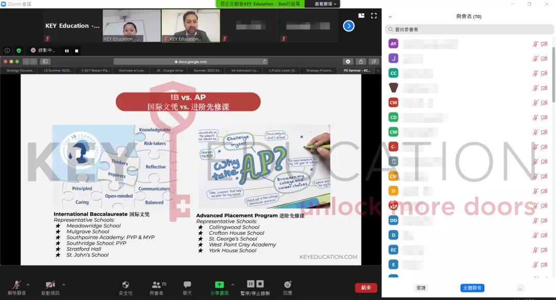 今年在新冠疫情的影响之下,私校祭出了许多相应对的招生政策调整,为了确保家长可以在居家防疫期间及时获得最新的信息,KEY也将我们的线下讲座调整成为线上的直播讲座,线上讲座的报名相当踊跃,家长的好评不断,讲座中的提问交流也是相当的踊跃。