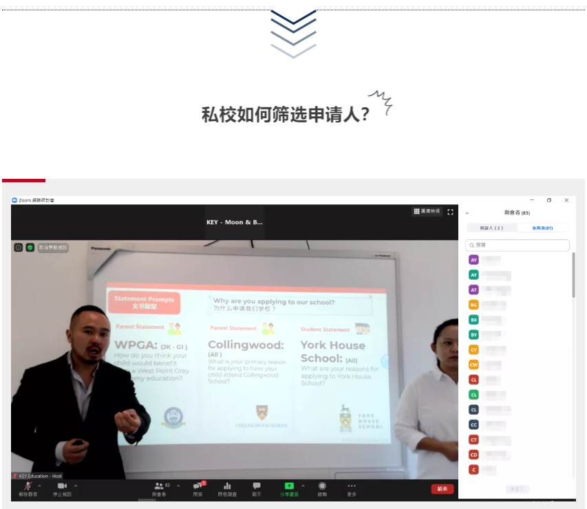 私校申请竞争的激烈程度好比千军万马挤独木桥,家长们普遍好奇的是,在如此多的申请者中,私校究竟是如何挑选候选家庭的呢?在讲座中,Brayan 根据他担任招生官时的经验,为家长们揭秘了私校筛选的流程,帮助他们找到申请的机会点。