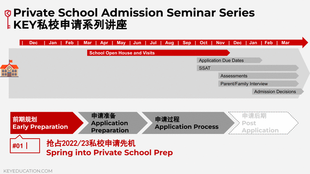随着2022的到来,我们许多有心的家长已经开始提前关注今年的私校申请了。为此,KEY特别召开了一场讲座 – 抢占私校申请的先机,解读家长有关私校申请的种种迷思,帮助大家找到申请准备的正确方向。本次讲座受到了众多申请家庭的关注,反响十分热烈,两小时的干货内容也让让家长们收获满满。为了帮助家长们更好的理解与掌握讲座中的核心信息,我们特别准备了本期文章,与您分享讲座的关键内容。