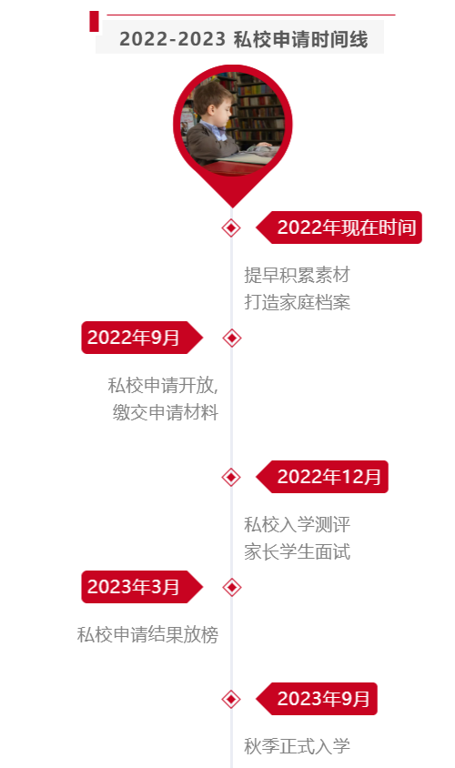 通常私校都是在9月开放下一个学年9月入学的申请,若您预计在今年进行私校申请,您将在2022年9月递交私校申请书,并且在2023年2-3月收到申请的结果,最后在2023年9月才正式入学。
