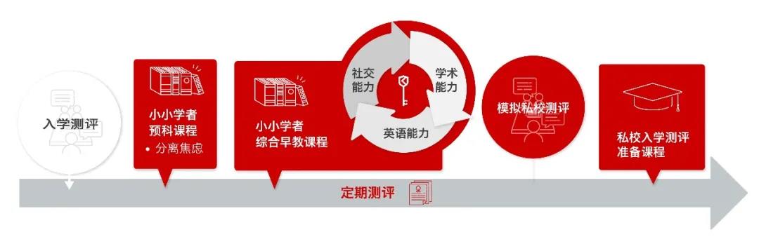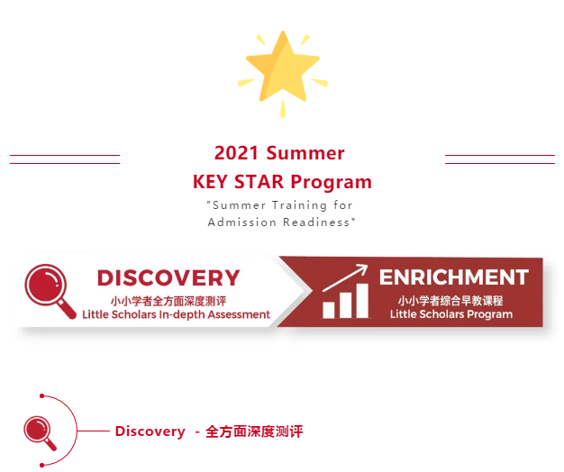 要在有限时间内迅速提高学生的综合能力,第一件事就是有效的评估孩子的水平。 Discovery课程通过一周的模拟私校入学测评、360全方面综合能力评估,测评后老师将提供一份学生的私校准备度报告。