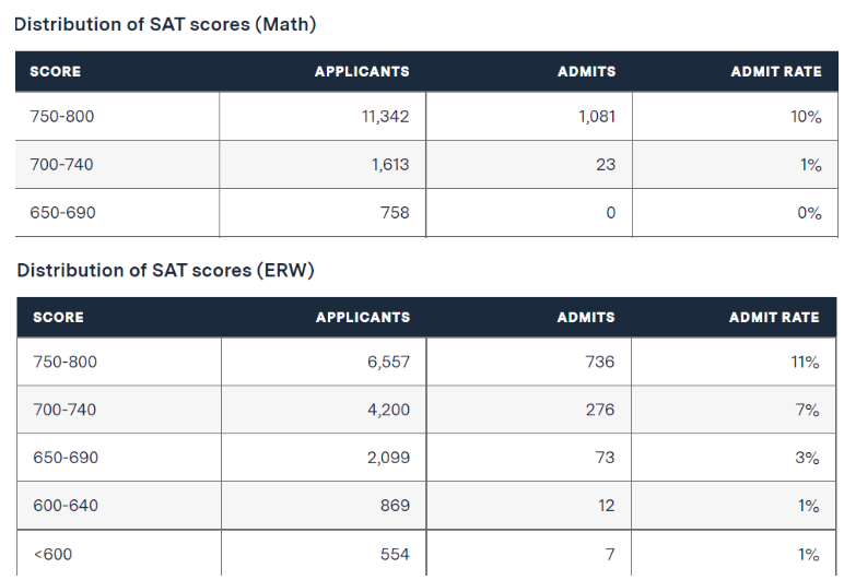 可以看出,绝大多数获得录取的MIT新生的SAT成绩都在最高的1500-1600这一档,许多人甚至取得了接近满分的成绩,可谓是妥妥的“尖子生”。