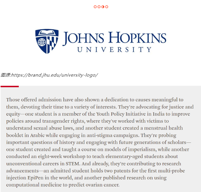 JHU被录取的新生91%在高中期间从事兼职、实习或暑期项目,表现出了自己的奉献精神,愿意将时间投入到各种兴趣爱好中, 以下是部分具有代表性学生的活动项目: