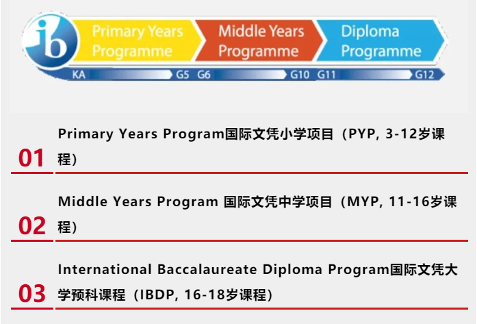 IB为3-19岁的学生提供从幼儿园到大学预科阶段的课程,共分为三个阶段