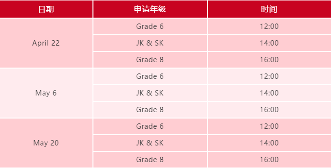 照正常的私校申请时间轴来看,目前正是学校开放校园参观日预约的阶段,但由于新冠疫情的影响,因此许多学校也正在寻找替代的校园参观方法,如Crofton House School将举办线上说明会的方式进行,并且也已经开放预约,这边KEY也为各位整理出了预约的时间表: