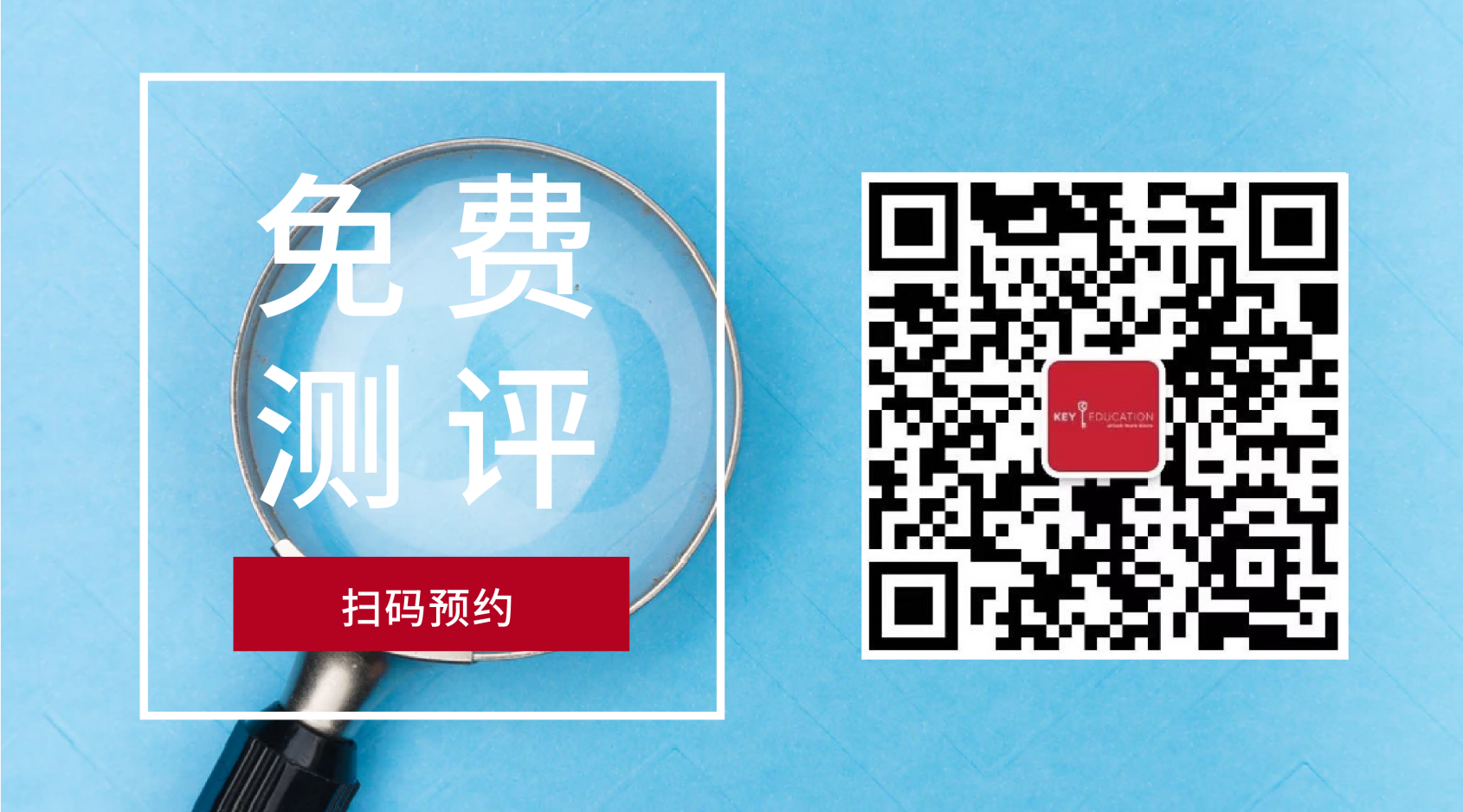同时,KEY还为家长们准备了一次的免费测评的机会,由KEY资深教师团队全面检测孩子的综合实力。测评结束后我们将提供一份报告,帮助您精确掌握孩子目前的发展水平,并给出进一步的发展建议。请扫下方二维码或”点击链接”联系客服完成预约。
