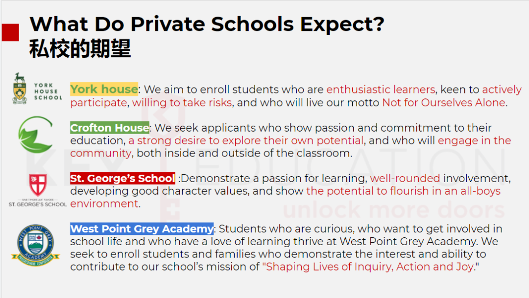 私校正在找寻的是一个理解学校教学理念并给予支持的家庭来合作,除了排名和声誉之外,你是否全面的了解每间学校所与众不同的地方,能在面试之中向学校证明您的家庭与学校是完美匹配的?