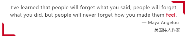 美国诗人作家Maya Angelou曾说过:「我已经学习到,人们可能会遗忘你所说的话,你所做的事,但永远不会忘记你给他们的感觉。」
