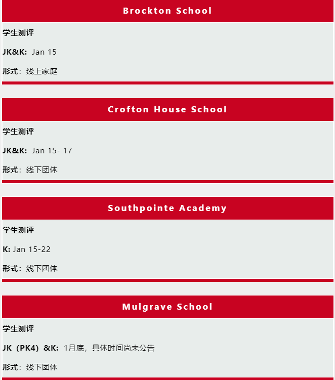 目前,大多数私校都已经发布了低龄段学生测评的邀请,普遍将在1月进行,请家长们格外留意自己所申请学校的测评时间与形式,提前做好应对。