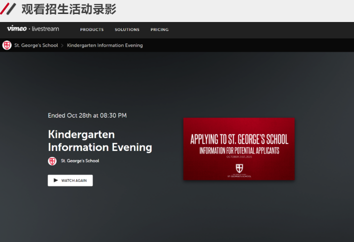 部分学校如St. George’s School, York House School等学校都有将往届举办的在线招生活动影片上传到学校官方网站,错过的家长可以通过观看回放的影片,第一手的掌握学校所提供的招生信息,进一步的学校有深入的了解。
