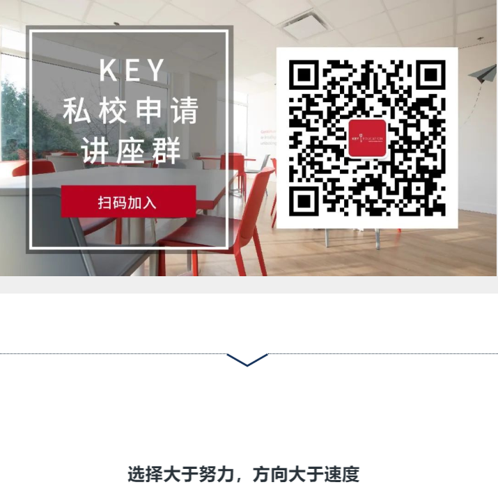私校申请没有捷径,全靠一步一脚印的努力和积累。然而,您首先需要找到正确的方向,进而才能事倍功半的进行准备。为此,KEY建议您先和我们专业的顾问团队预约一次免费的咨询会议,由专业人士了解您的家庭情况后,给出针对性的建议,快扫描下方二维码预约吧!
