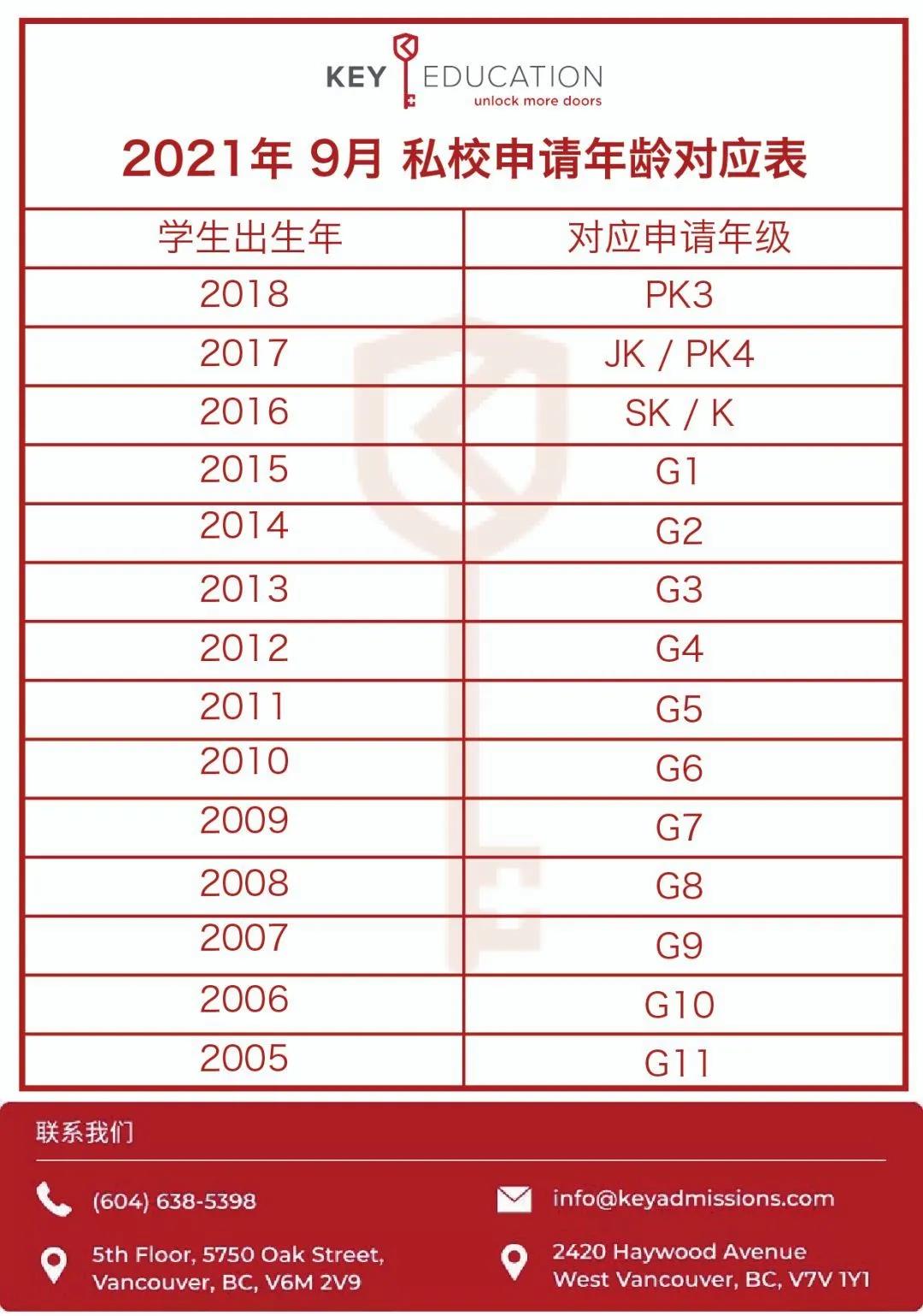 讲到这边如果您还是不明白,KEY也为整理出了2021年私校申请年龄对应表給各位家长参考: