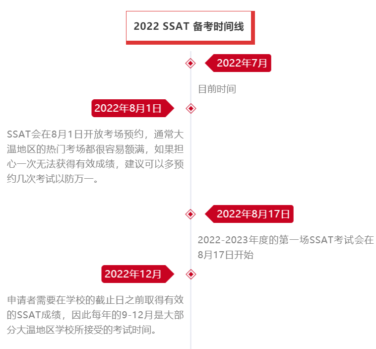 那么,对于今年申请的家长而言,孩子具体应该什么时候要考SSAT,眼下又有多少时间可以准备呢?在这里,KEY特别为各位家长整理了2022-2023申请年的SSAT备考时间线。