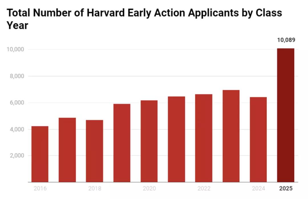 过去一年来,疫情风波不断,却止不住学生们对名校的向往。调查显示,北美地区名校申请数量激增,常春藤学校的申请者更是面临了前所未有的激烈竞争。以哈佛大学为例,该校2025届早期申请共计收到10, 089份申请,录取747人,同比增长57%。早期录取率为7.4%,而常规申请的录取率则惊人的创下历史新低,只有3.4%