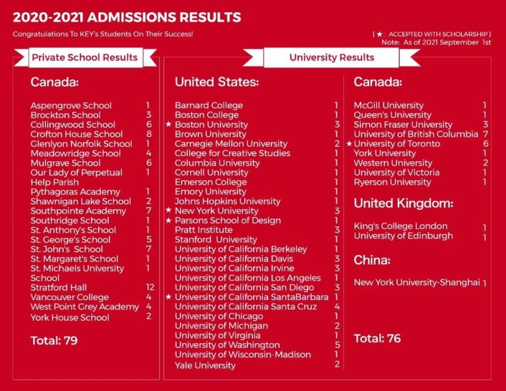 金秋时节悄然将至,新一学年即将开始。KEY的莘莘学子,手握心仪学校的录取通知书,怀揣着梦想,背起行囊,前往世界各地的高等学府,开启他们人生崭新的旅程。首先,让我们一睹 KEY的学生在过去一年中的傲人战绩: