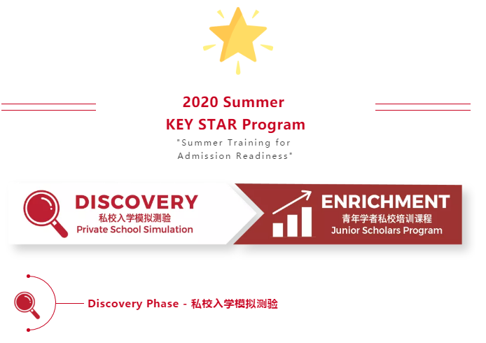 因此,为了确保您的孩子能够在私校测评开始前,具备充足的准备,KEY也在今年夏天推出了STAR Program,通过Discovery (探索阶段)与Enrichment(深度强化阶段)的组合,为孩子进行最后的增强补弱。