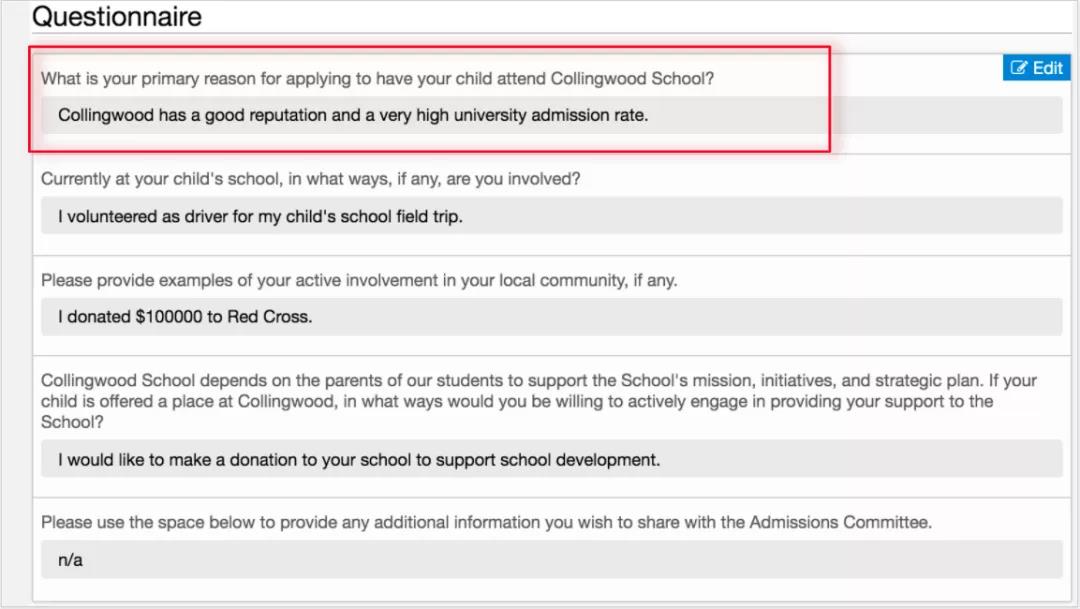 有些粗心的家长,只关注私校的测评与面试的准备,却将重要的申请文书当成了简答题,草草填写就递交了。殊不知,当您当递交申请书的时候,私校已经开始了第一阶段的筛选。而申请文书则是您参加后续测评与面试的入场券。因此, 一份好的文书需要花上时间与精力精雕细琢,请家长们务必要认真准备。