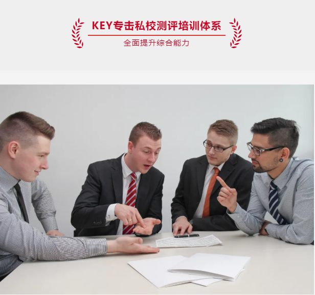 许多亚裔的申请家庭,对于孩子的学术能力信心满满,同时也清楚了解学术测评的考察点与准备方向。但是却首次接触团体测评,不清楚私校将会如何考察学生的软实力,更不知该如何准备。为此,KEY根据多年经验,特别设计了一套针对私校团体评测的解决方案: