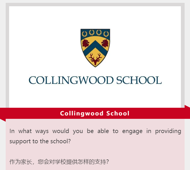 除此之外,私校还希望与家长们共同打造一个和谐互助的私校社区,在社区中,家长们不仅积极参加或领导学校所举办的相关活动,更能从社区的角度思考,主动贡献自己的力量,让社区变得越来越好。想要达成这点,需要的不只是一两位家长的协助,而是全体私校家长的共同努力。因此,针对这点,私校不光会通过文书进行考察,更会在面试中对家长进行进一步的询问,以一道常见的面试题为例: