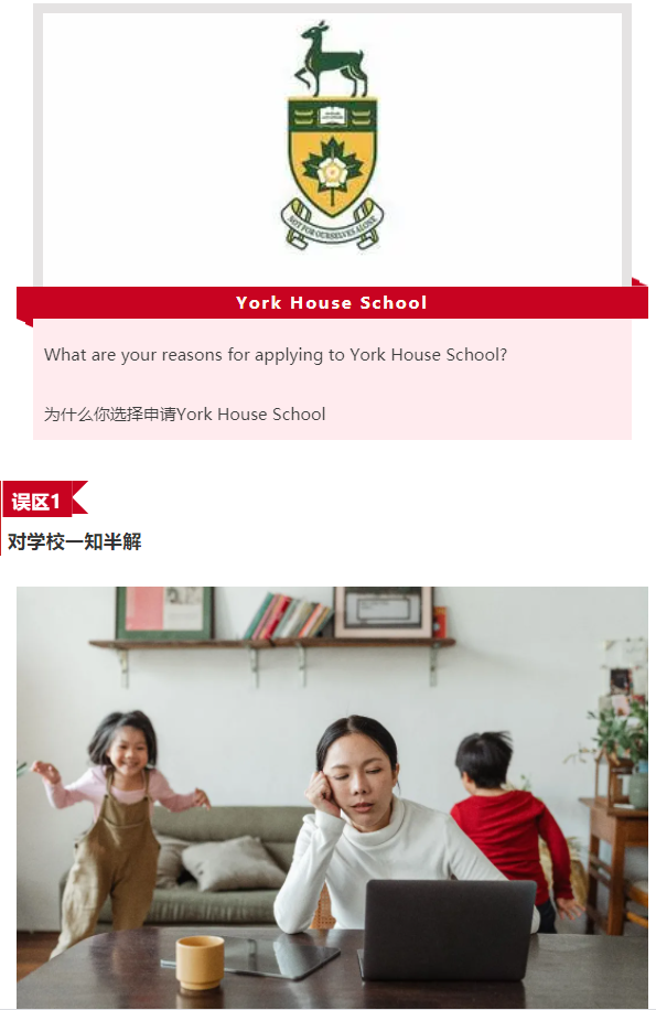 还有些做过功课的家长,在学校官网调查了校方所看重的品质与学校特色项目,例如York House School所提倡的领导力。为了展现家庭与学校的匹配度,便将这些信息一股脑的复制到文书之中,表现出自己对学校的了解,以及对学校理念的赞同,并提到希望培养孩子的领导力。但是对学校而言,这样的答案只是停留在表面,缺乏具体事例的支持,并不能帮助招生官真正认识您的家庭。所以,您在文书中应该展现的是您个人对领导力的独特见解,以及你是如何在家庭教育中培养孩子的领导力的,才能真正打动招生官,留下深刻的印象。