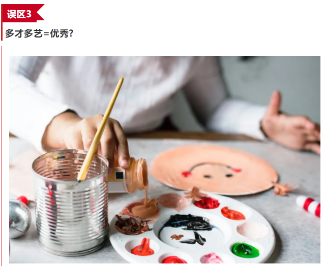 许多家长想为自己的孩子增加未来成才的筹码,于是一周上八堂才艺课,好像只要孩子十八般武艺样样精通就称得上优秀。但这不应该是简单的数学题,不是只做加法越多越好就能上名校、成人才,当别人全心全意锤炼一技之长时,你的多才多艺反而显得样样皆学却无一精通,更无法聚焦个人独特的闪光点。