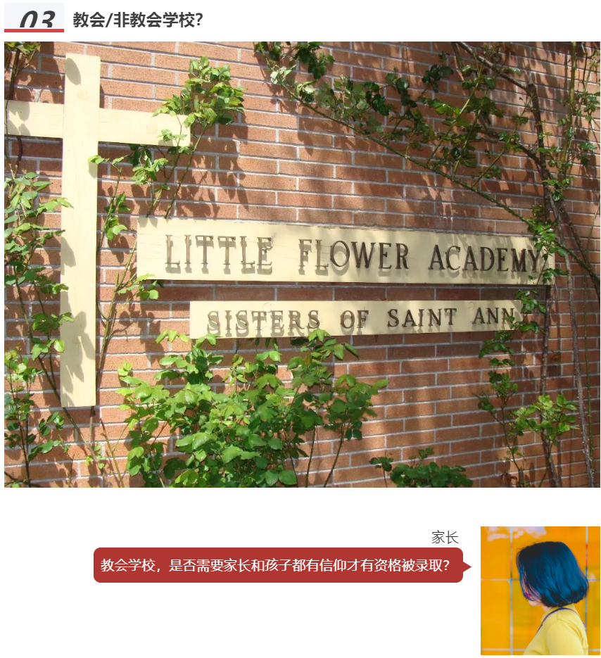 相比于其他私校,具有宗教背景的学校将信仰的核心价值观融入到日常的教学之中,强调为孩子塑造积极向上的价值观和正确的道德观念。同时,无信仰的家庭也可以申请教会学校,但KEY需要提醒您,私校具有“优先录取”的制度,在录取时会优先考虑本地教区的教友家庭,非信徒家庭申请的竞争会相对更激烈。